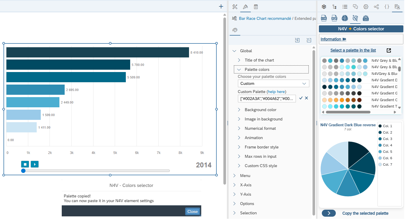 - Un message s'affiche pour vous indiquer que vous pouvez utiliser cette palette copiée dans votre élément N4V.