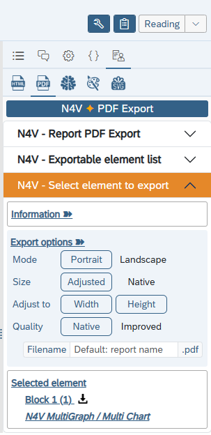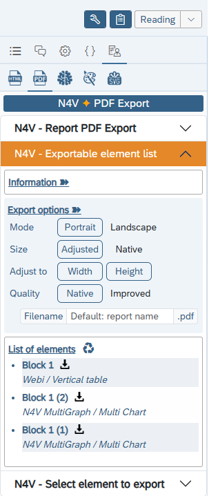 - Affichez l'Export PDF N4V dans le panneau N4V.